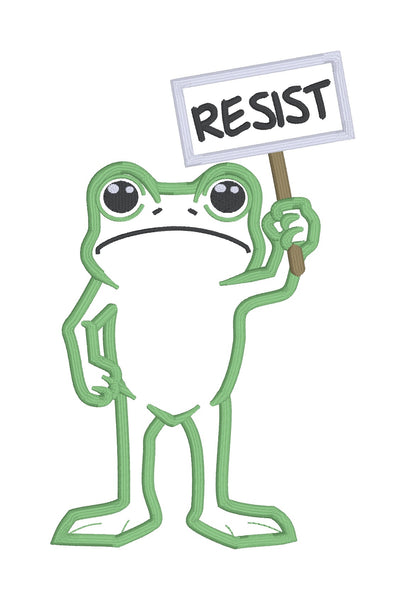 Resist Frog applique embroidery design for use with an embroidery machine.
